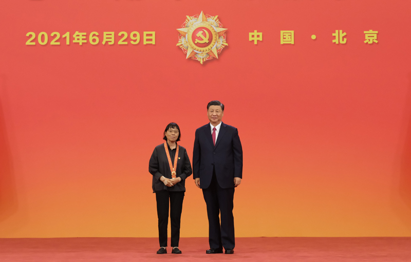 6月29日,慶祝中國共產(chǎn)黨成立100周年“七一勛章”頒授儀式在北京人民大會堂金色大廳隆重舉行。中共中央總書記、國家主席、中央軍委主席習近平向“七一勛章”獲得者張桂梅頒授勛章。新華社記者 李學仁 攝
