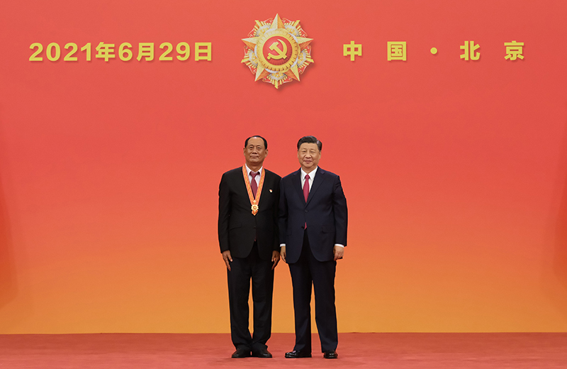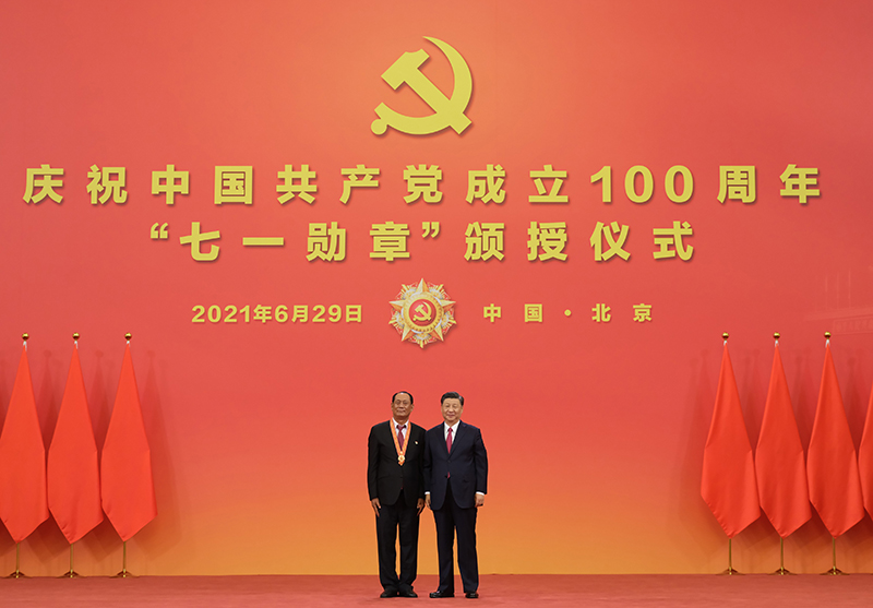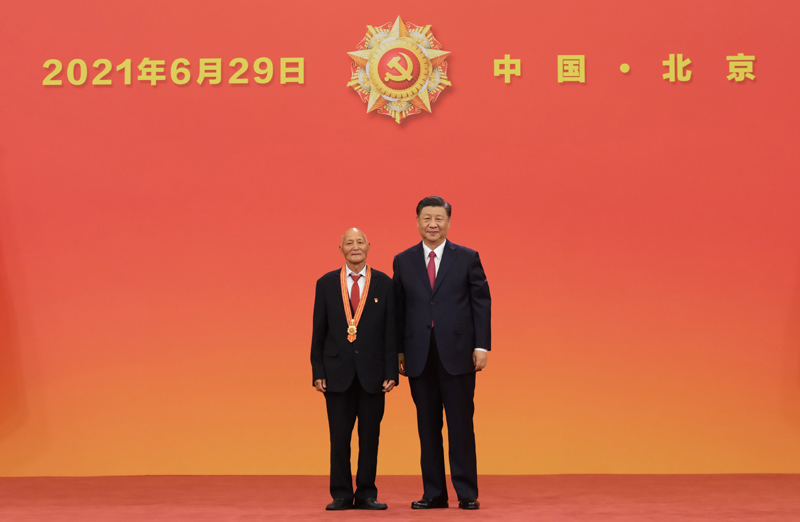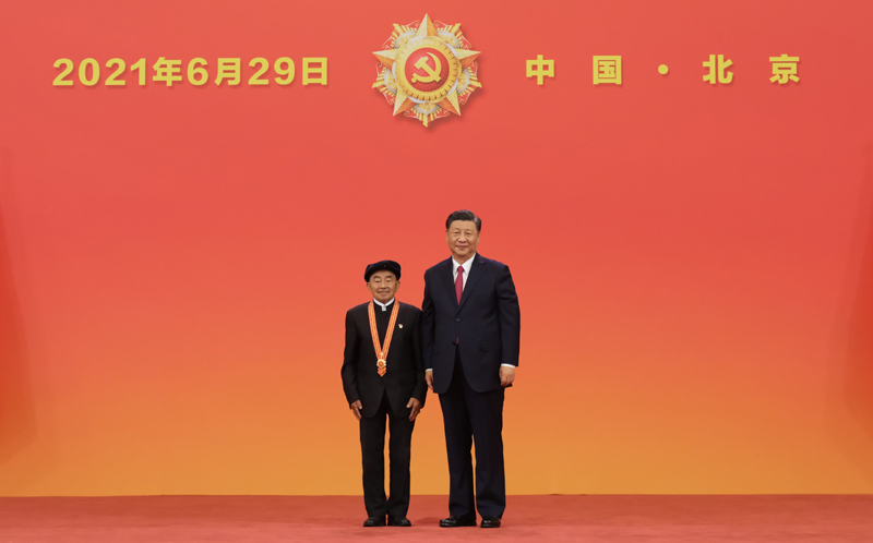 6月29日,慶祝中國共產(chǎn)黨成立100周年“七一勛章”頒授儀式在北京人民大會堂金色大廳隆重舉行。中共中央總書記、國家主席、中央軍委主席習近平向“七一勛章”獲得者崔道植頒授勛章。新華社記者 李學仁 攝