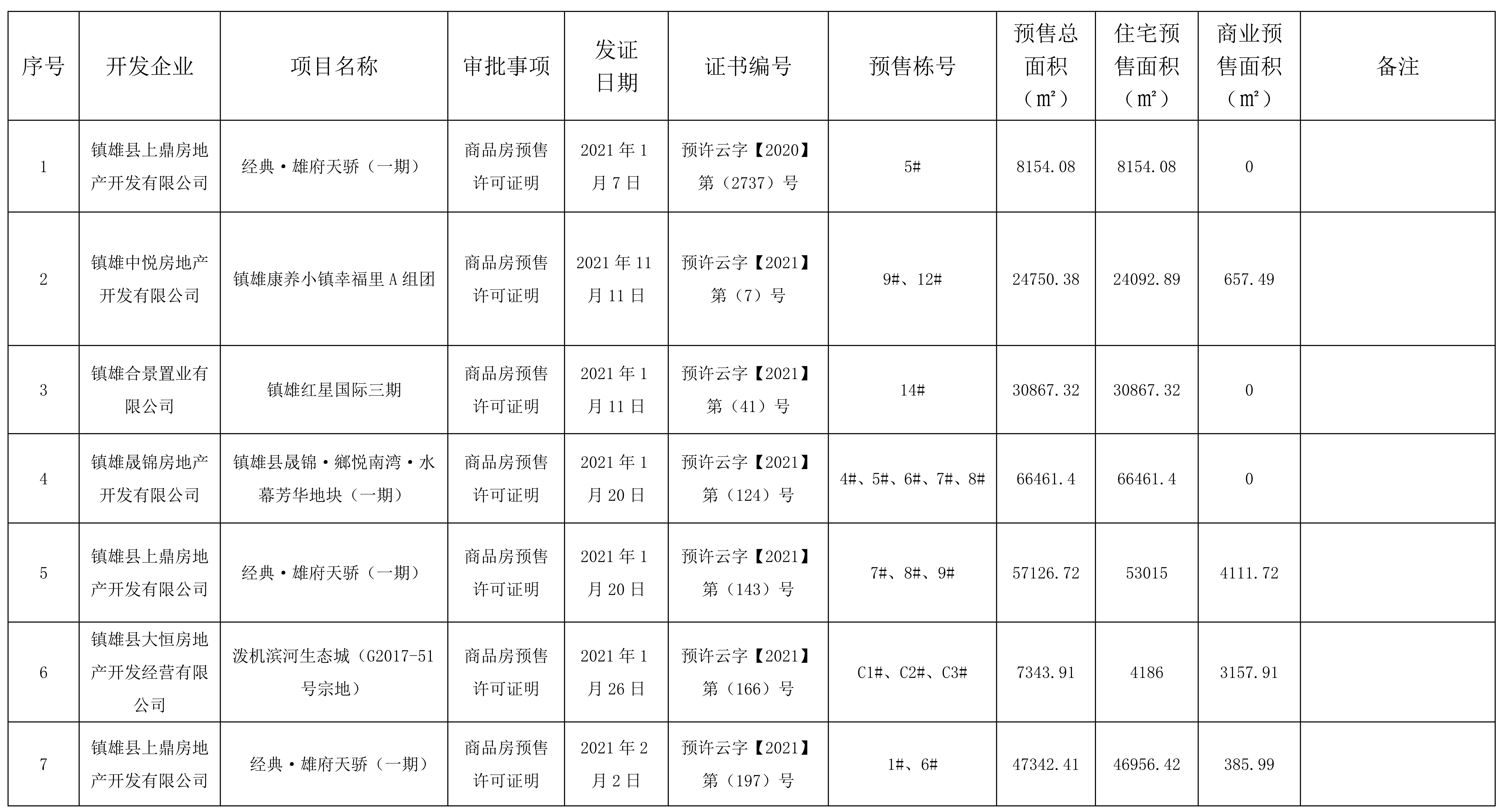 鎮(zhèn)雄縣住房和城鄉(xiāng)建設(shè)局關(guān)于2021年1月1日至2021年6月31日《商品房預(yù)售許可證明》辦理情況的通告