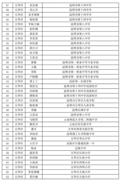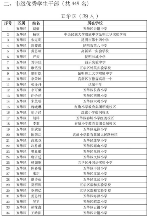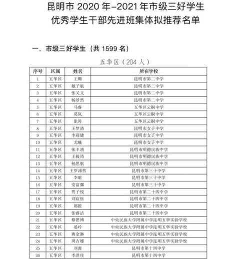 昆明市五華區(qū)關(guān)于2020—2021學(xué)年市級三好學(xué)生優(yōu)秀學(xué)生干部先進(jìn)班集體擬推薦名單的公示