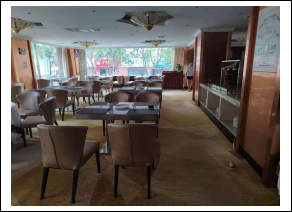 1、就餐區(qū)桌面、桌椅、墻面、地面清潔,門窗潔凈明亮,就餐場(chǎng)所整潔。