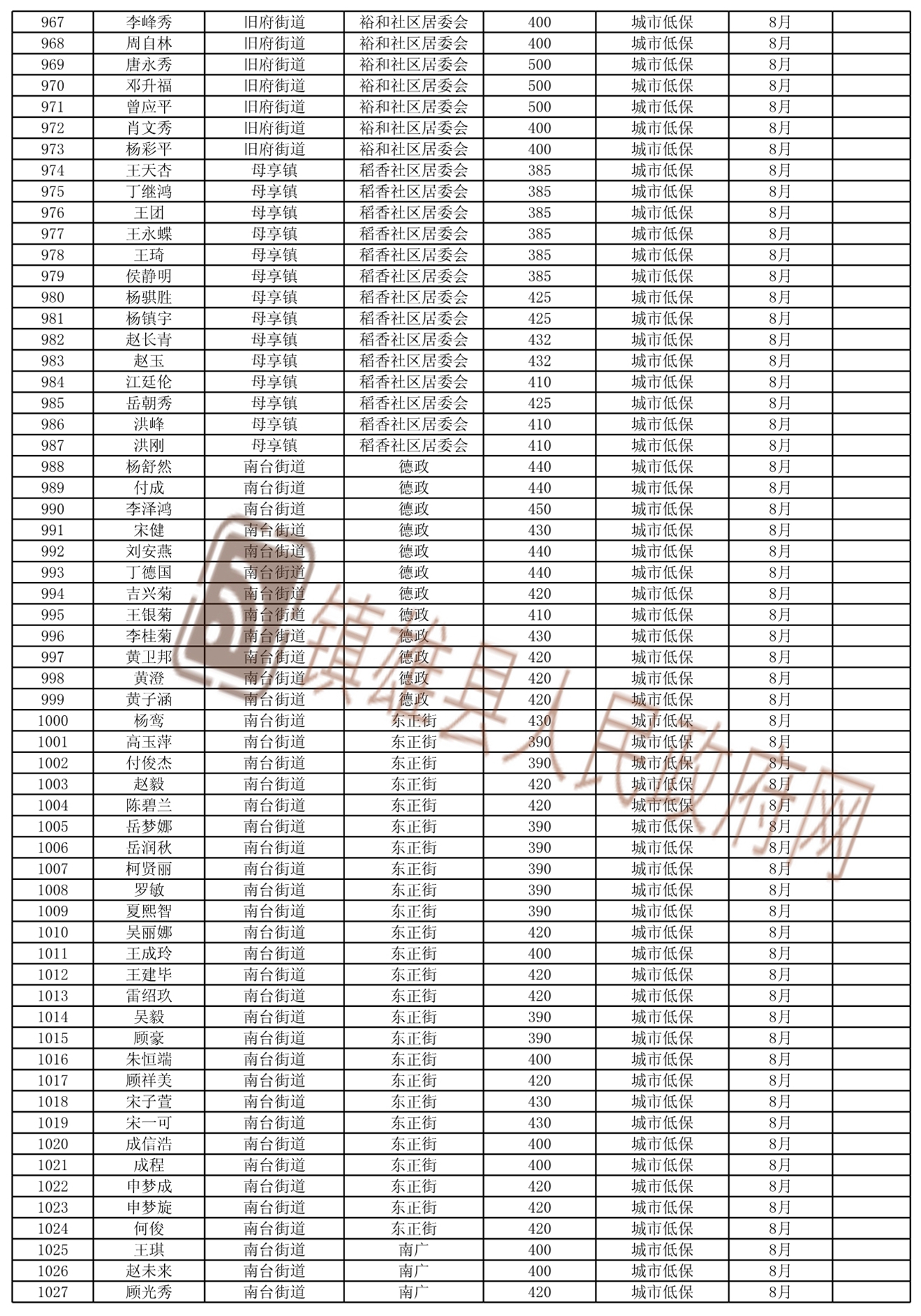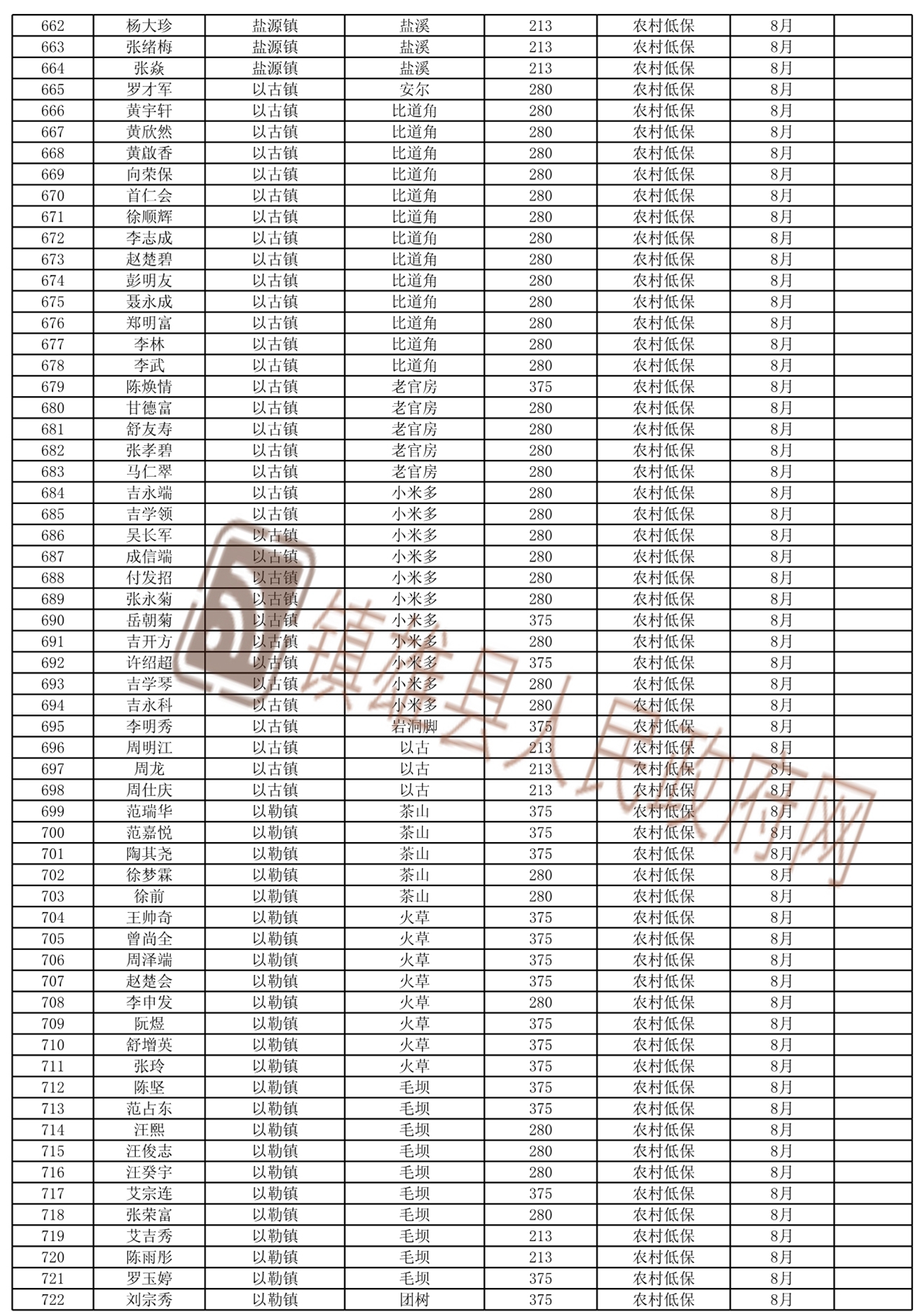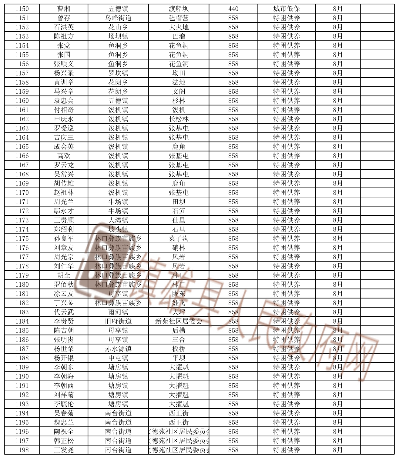 2021年8月份新增城鄉(xiāng)低保和特困人員名單