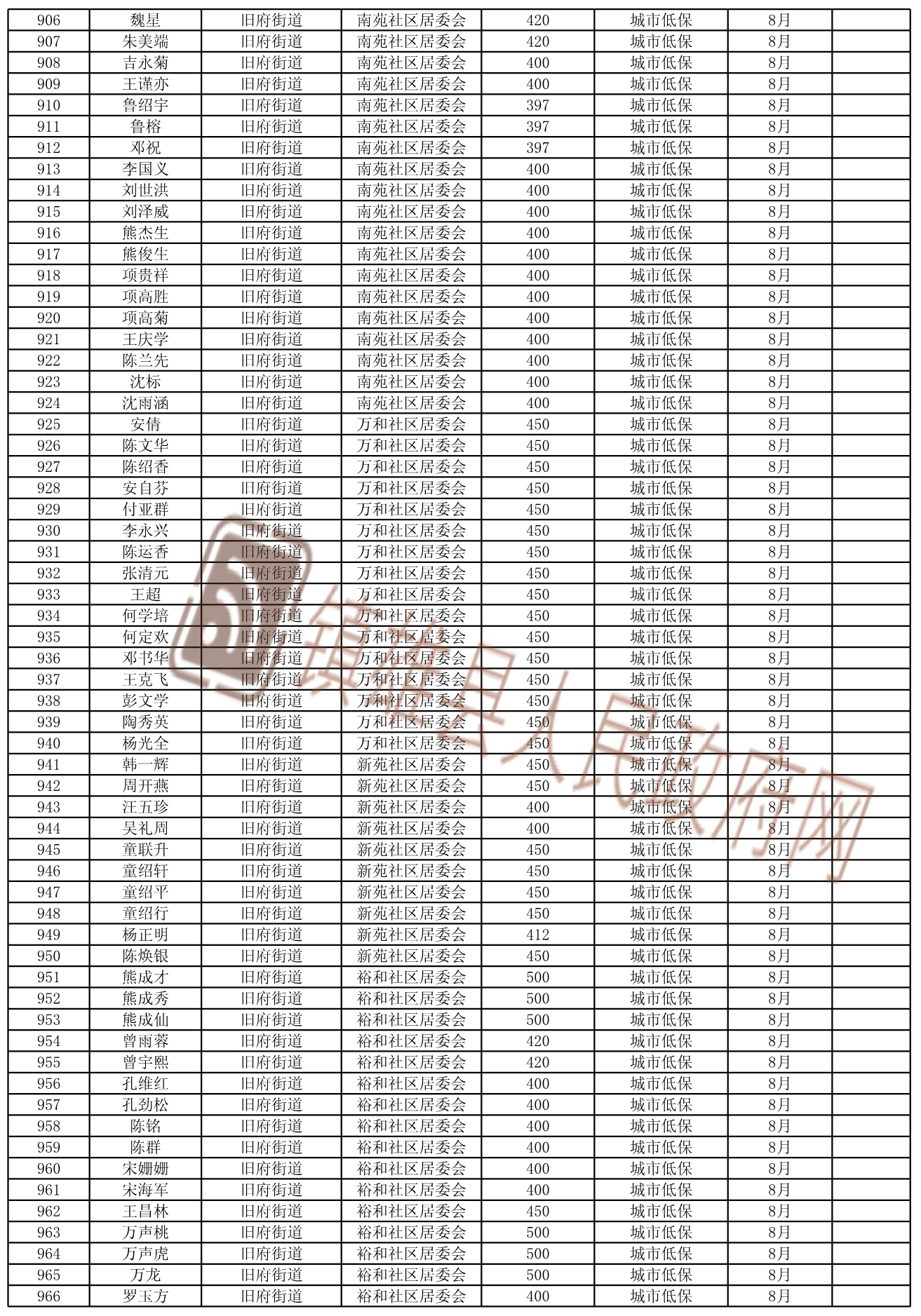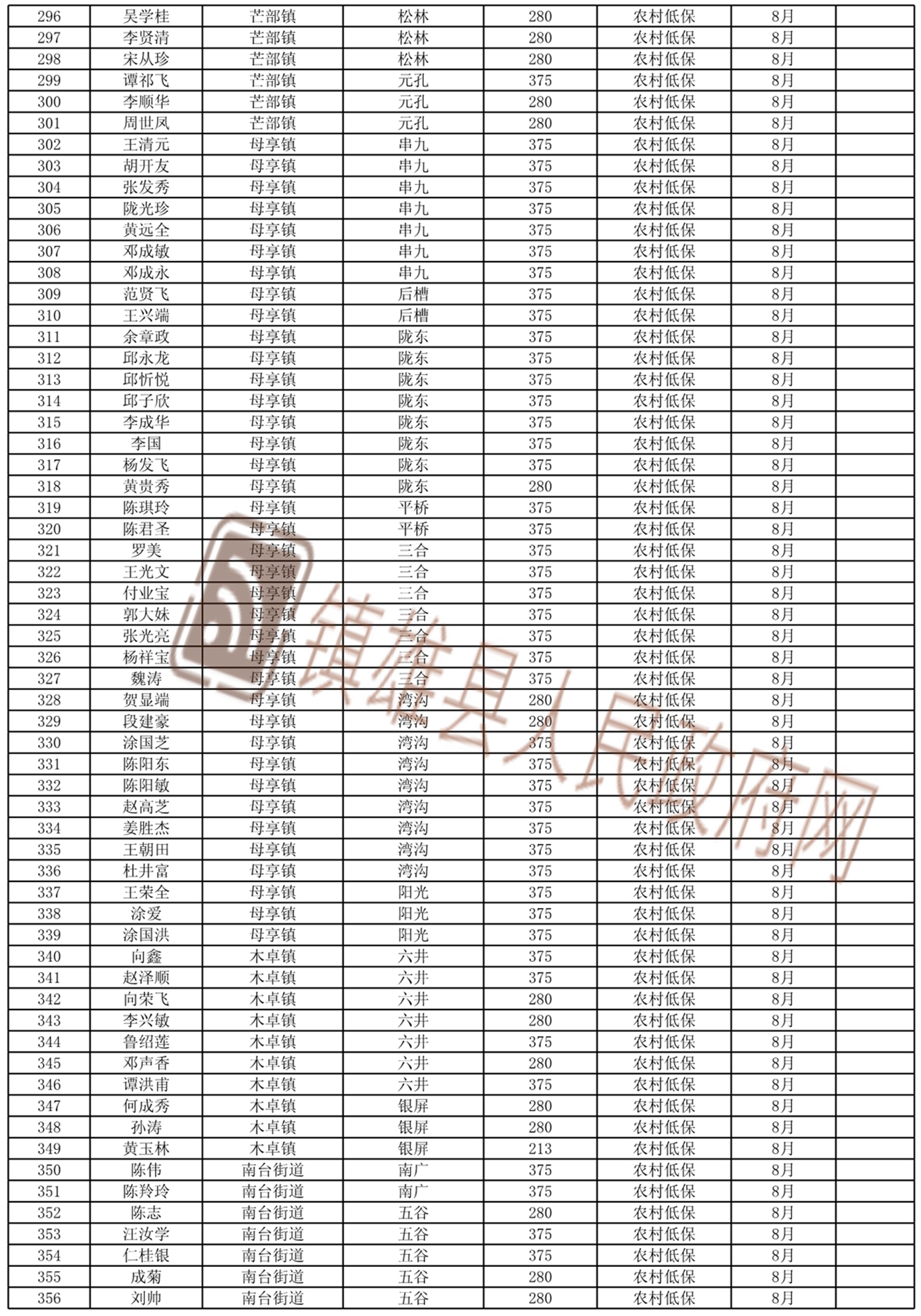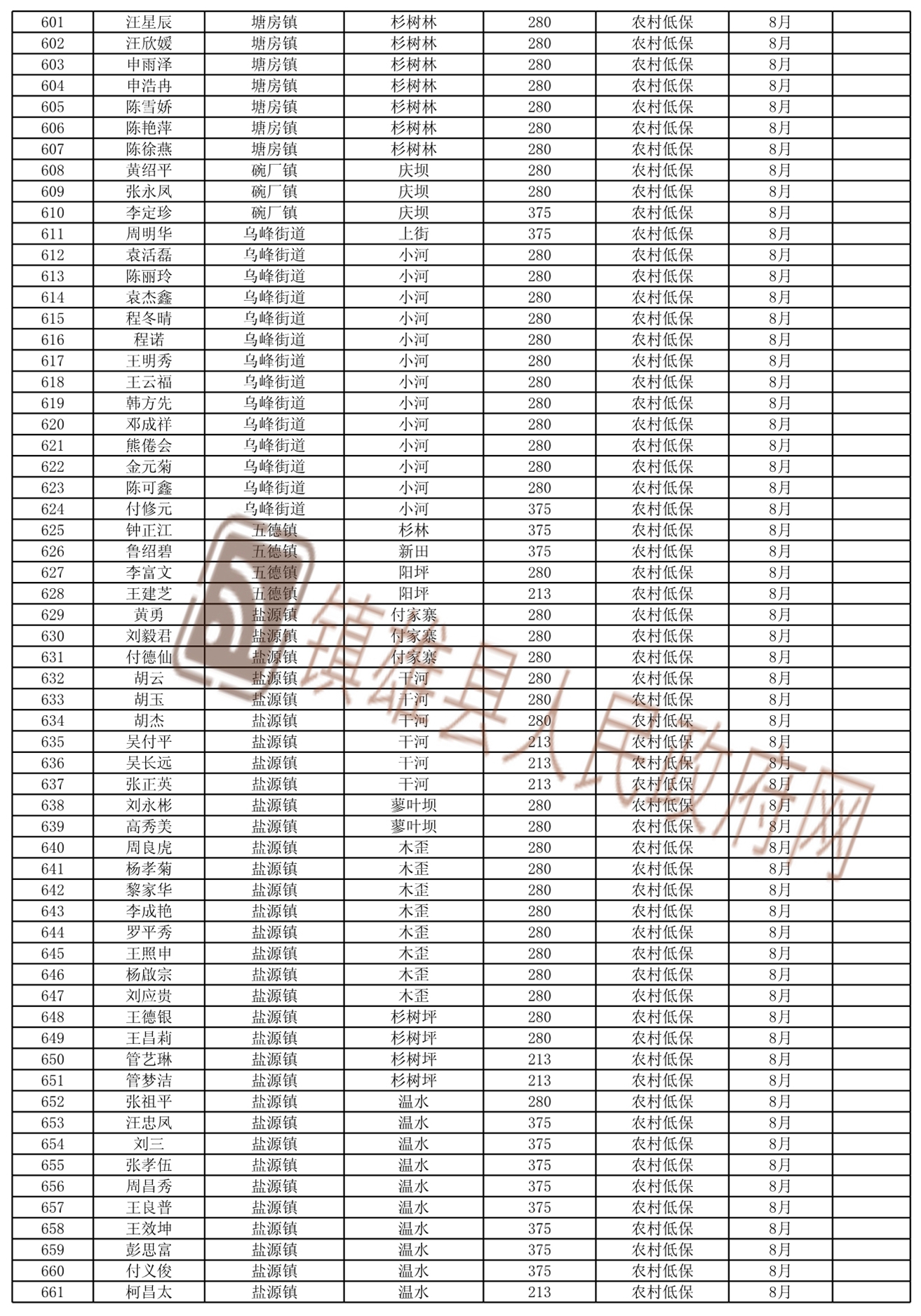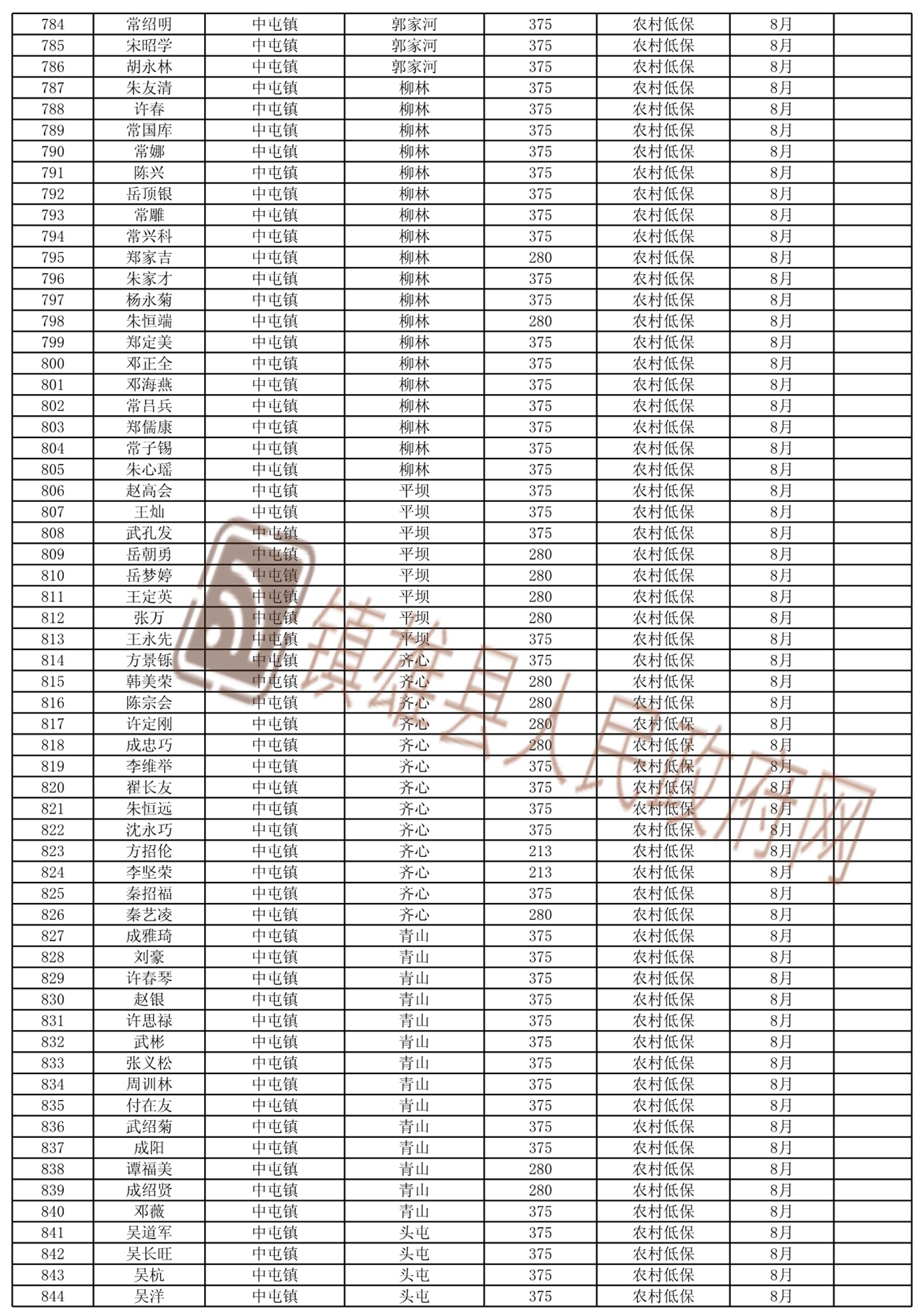 2021年8月份新增城鄉(xiāng)低保和特困人員名單