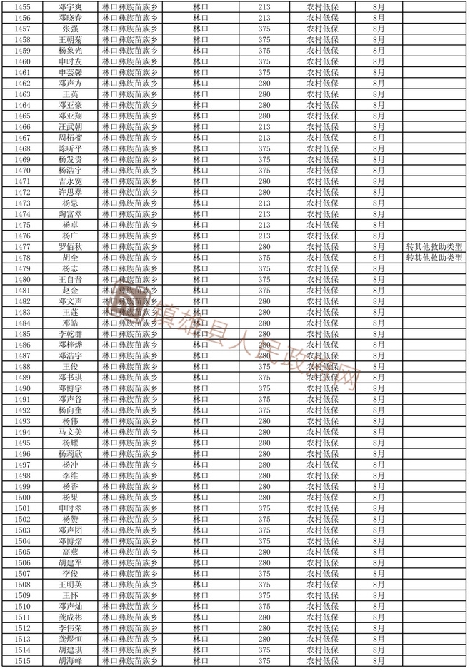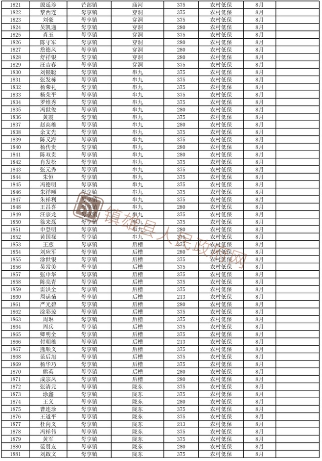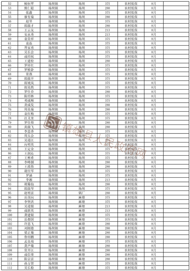 根據(jù)《鎮(zhèn)雄縣陽光低保專項行動實施方案》,我縣城鄉(xiāng)低保及特困人員救助金發(fā)放按動態(tài)管理后的名單執(zhí)行。現(xiàn)將2021年8月退出城鄉(xiāng)低保的名單及特困人員名單予以長期公示,今后根據(jù)動態(tài)情況適時更新。公示期間,如對城鄉(xiāng)低保人員及特困人員有異議的,請向有關(guān)單位舉報。