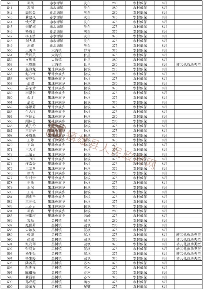 鎮(zhèn)雄縣民政局關(guān)于2021年8月份退出城鄉(xiāng)低保和特困人員名單的公示