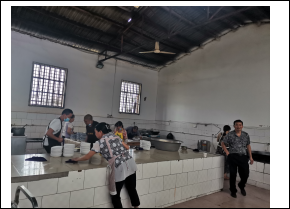 3、后廚干凈衛(wèi)生,地面沒(méi)有積水、垃圾,物品擺放整齊有序,符合衛(wèi)生要求。