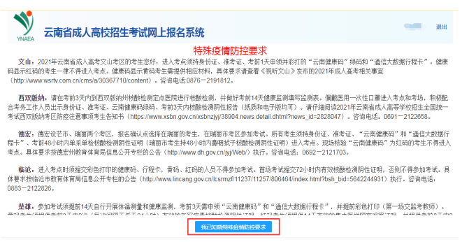 6.緊接著考生要認(rèn)真閱讀《特殊疫情防控要求》,有在這五個(gè)考區(qū)考試的考生需特別留意,點(diǎn)擊“我已知曉特殊疫情防控要求”按鈕。