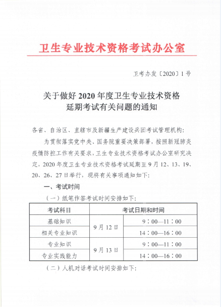 關于延期舉行2020年護士執(zhí)業(yè)資格考試的通知