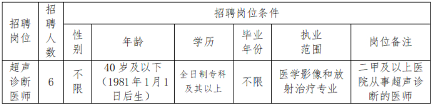 為使醫(yī)院人力資源配置適應(yīng)醫(yī)院業(yè)務(wù)發(fā)展需求,保障醫(yī)療安全,提高服務(wù)質(zhì)量,滿(mǎn)足廣大人民群眾日益增長(zhǎng)的醫(yī)療衛(wèi)生需求,我院決定招聘超聲醫(yī)學(xué)科編制外工作人員,具體事項(xiàng)如下: