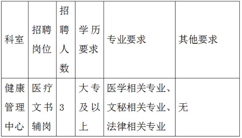 康管理中心面向社會公開招聘輔助崗位人員3名(非事業(yè)編制,勞務派遣方式),現(xiàn)將有關招聘事宜公告如下: