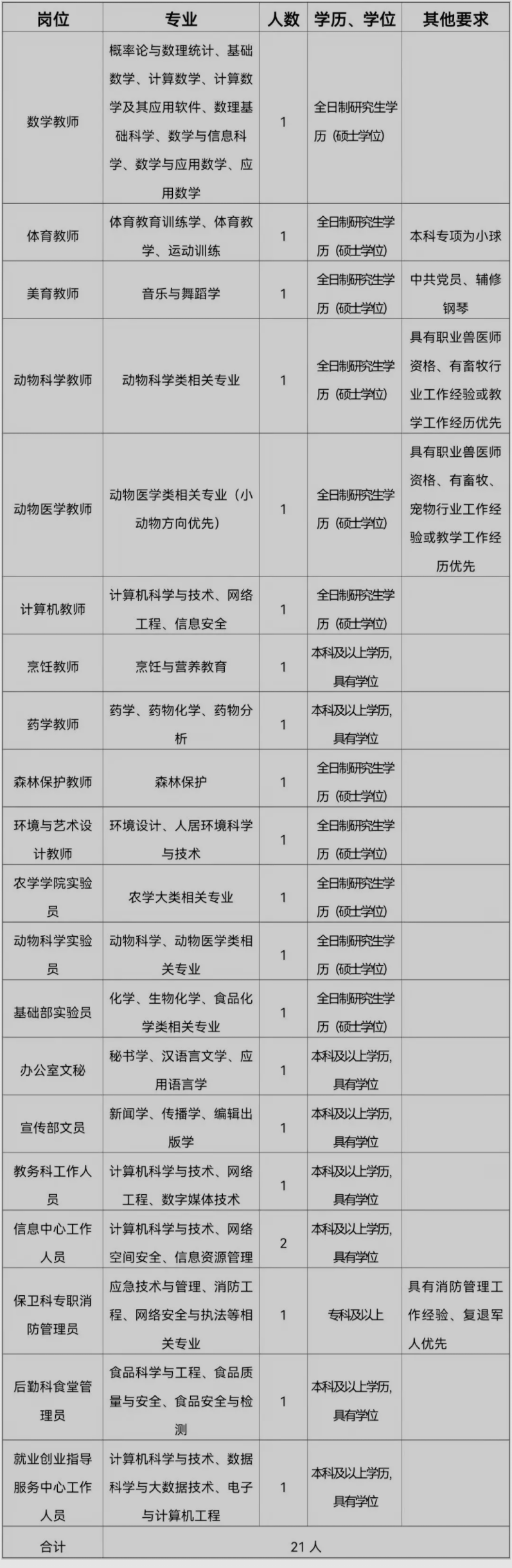 大理農(nóng)林職業(yè)技術(shù)學(xué)院2022年公開招聘編制外教師、工作人員公告