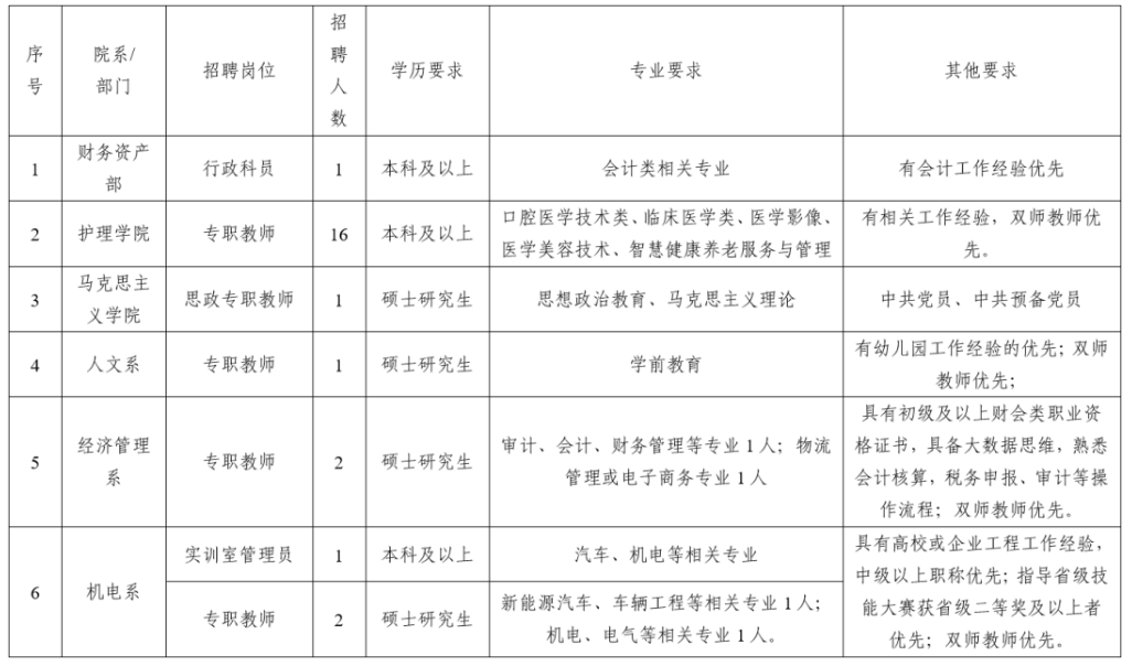 (二)專職教師招聘需求