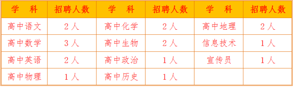 為適應(yīng)學校進一步發(fā)展的需要,適當擴大高中招生,儲備部分學科教師,現(xiàn)面向全國引進或招聘部分優(yōu)秀高中學科教師。
