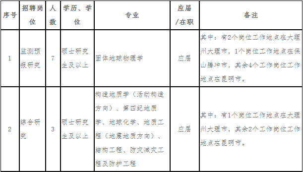 云南省地震局2019年度事業(yè)單位公開招聘公告