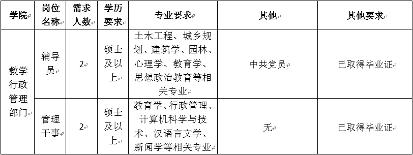 根據(jù)學(xué)院工作需要,現(xiàn)面向社會補(bǔ)充招聘教師及管理干事,具體要求如下: