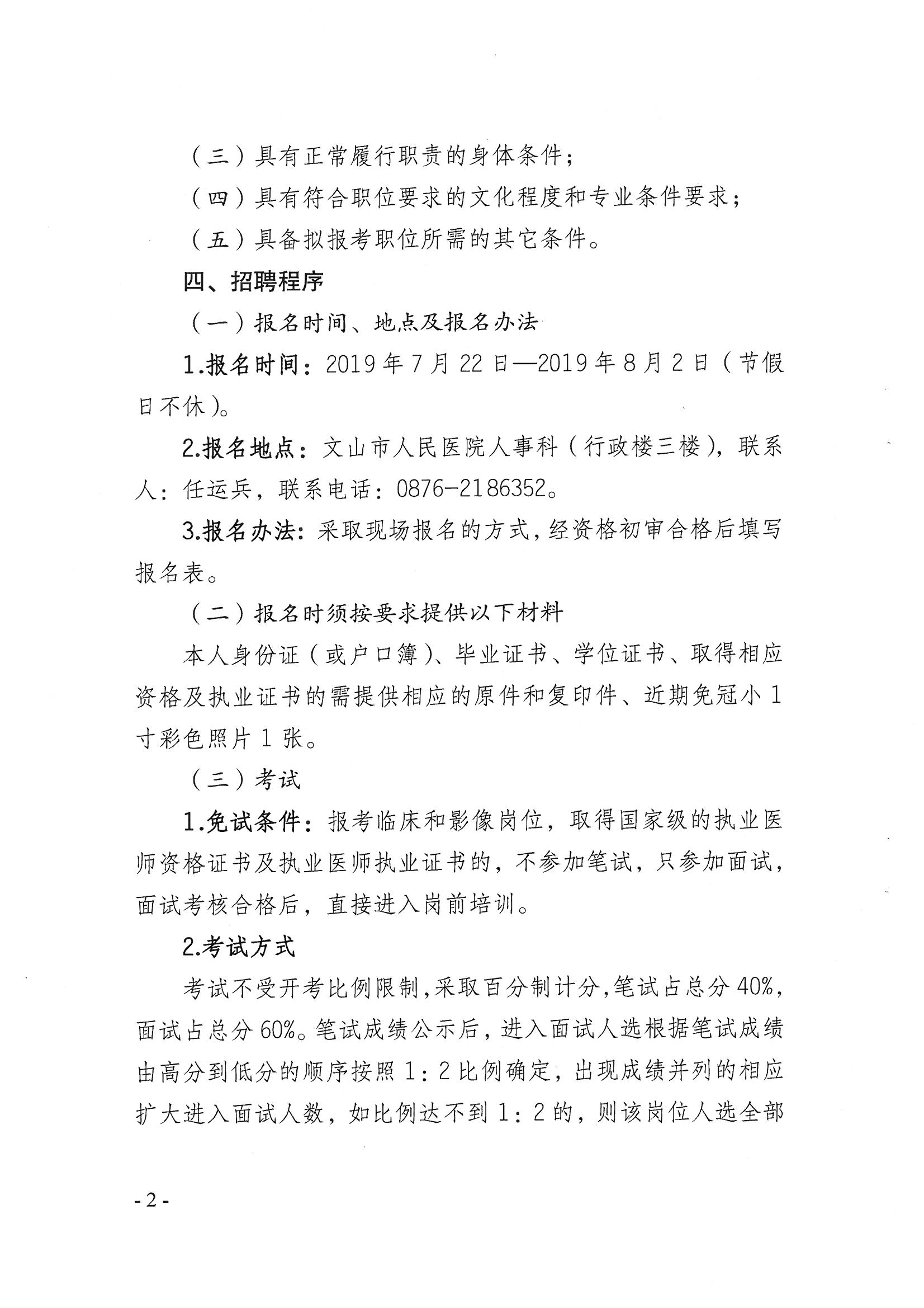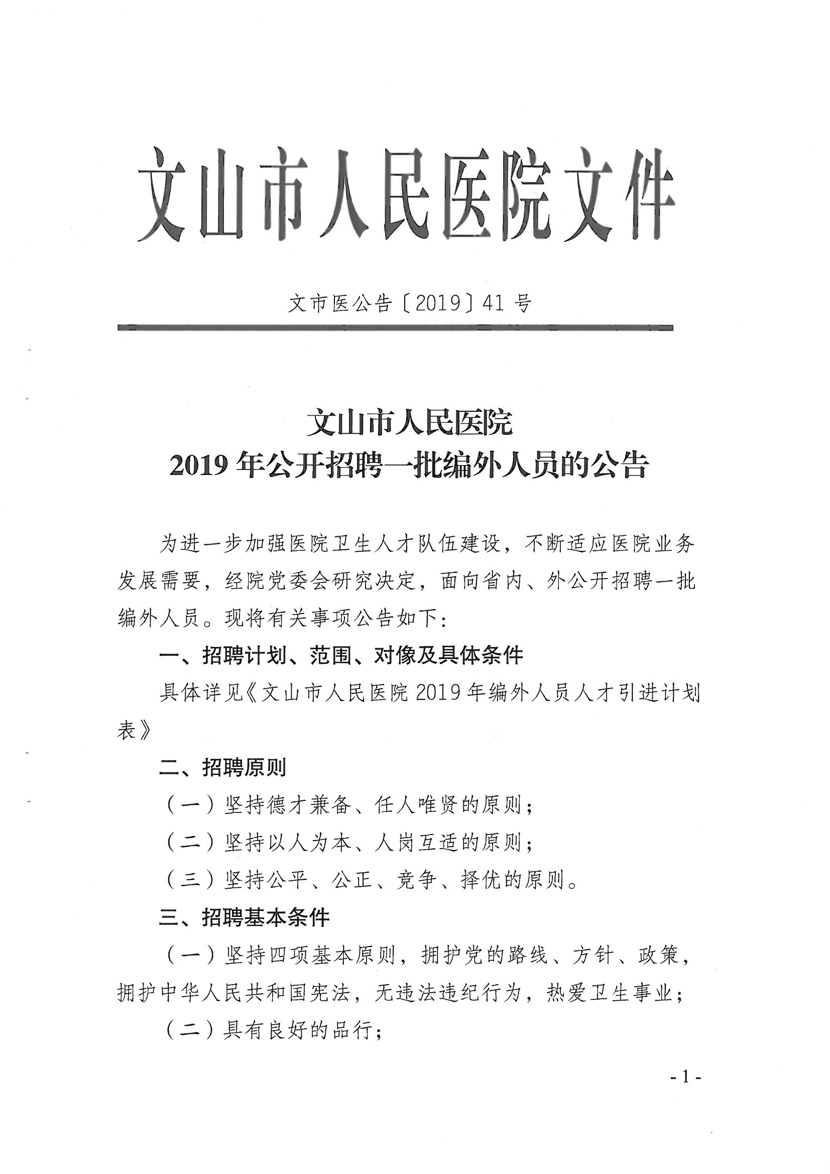 文山市人民醫(yī)院2019年公開(kāi)招聘一批編外人員的公告
