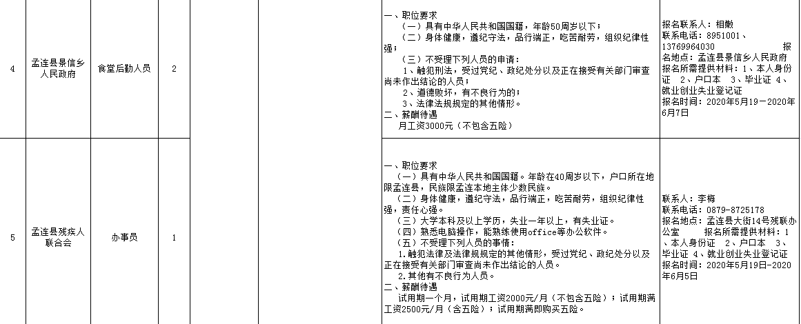 普洱市孟連縣人力資源和社會保障局關(guān)于2020年第一批孟連縣城鎮(zhèn)公益性崗位招聘簡章的公告